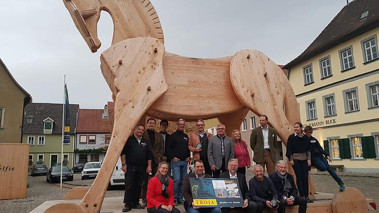 Goslar? Nein, dort wird es keine Ausstellung über Troja oder die Person Heinrich Schliemann geben. Aber in Goslar wohnt Tristan Niewisch. Und eben dieser Tristan Niewisch feierte, wie es der Zufall so will, Ende September mit Freunden seinen Geburtstag in Iphofen. Dabei entdeckte er auf dem Marktplatz das Trojanische Pferd, das die Firma Böhm Bau aus Markt Einersheim nach den Entwürfen des Würzburger Künstlers Wladimir Petrichev gebaut hatte.