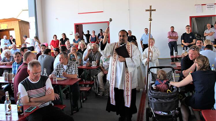 Im neuen Gebäude begann schließlich der offizielle Teil mit der Segnung durch die beiden Geistlichen, Pfarrer Joseph und Dekan Hanspeter Kern. Dankbar und voller Freude seien an diesem Tag viele in Geiselwind, sagte Pfarrer Joseph. "Das ist kein kleines Häuschen, sondern von beeindruckender Größe. Es hat viel Arbeit, Mühe, Sorgfalt und auch Geld gekostet", sagte der Geiselwinder Pfarrer zum neuen Feuerwehrhaus. Dekan Kern hob hervor, dass sich die Wehrleute freiwillig für ihre Mitmenschen einsetzen.