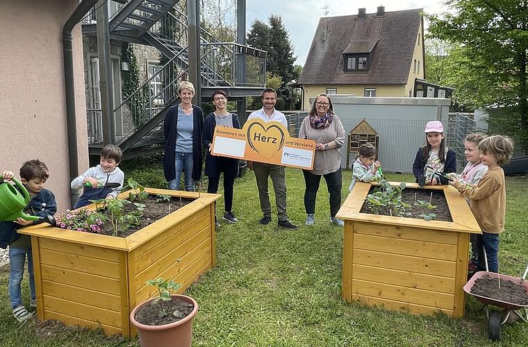 Nachhaltigkeit, Naturschutz und Umweltbewusstsein – dafür sollen schon die Kleinsten sensibilisiert werden. Daher steht das Thema Nachhaltigkeit bei allen drei städtischen Kindertagesstätten auf dem pädagogischen Programm, wie es in einer Pressemitteilung der Verwaltungsgemeinschaft Volkach heißt. Säen, pflanzen, pflegen und ernten können die Kinder der Einrichtungen in Volkach, Obervolkach und Gaibach ab sofort nun dank brandneuer Hochbeete. Der Grund: Die Raiffeisenbank Mainschleife-Steigerwald hat den Kitas insgesamt neun Hochbeete im Wert von insgesamt über 4000 Euro spendiert. Martin Schmiedel, Marketingleiter der Bank, freute sich bei der offiziellen Übergabe über die strahlenden Gesichter der jeweiligen Erzieherteams und der vielen Kinder, die sich mit großer Begeisterung in das Projekt „Hochbeet-Bepflanzung“ gestürzt haben. Er betonte, dass das Thema Nachhaltigkeit immer wichtiger werde und es deshalb nur folgerichtig sei, schon Kinder im Krippen- und Kindergartenalter an das immens wichtige Thema heranzuführen, wie es in der Mitteilung heißt.