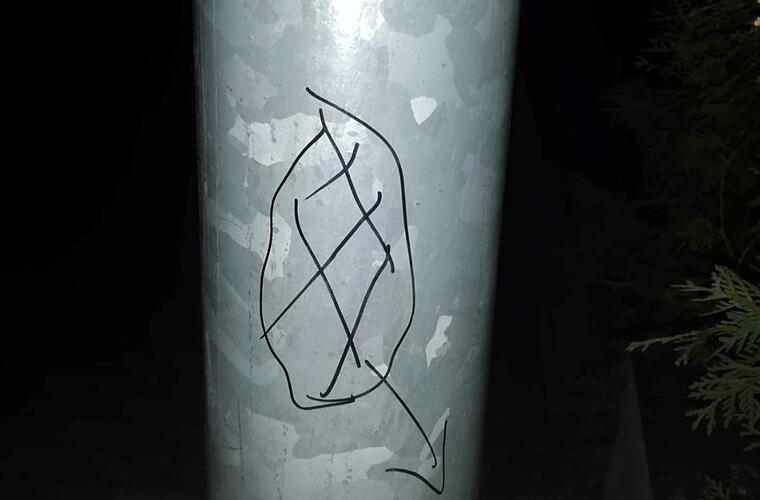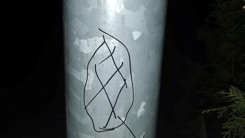 In der Gemeinde Obernbreit (Landkreis Kitzingen) wurden vermehrt mutmaßliche "Gaunerzinken" an Laternen gemeldet. Nun äußert sich die Polizei zu den seltsamen Kritzeleien.