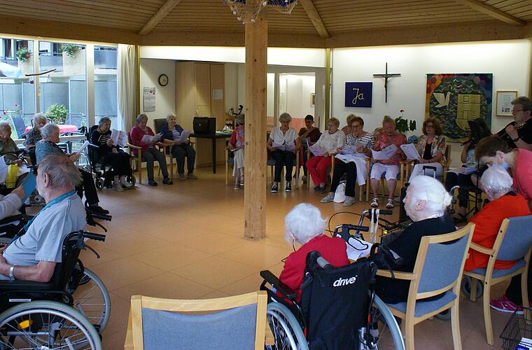 Kaum waren die Liedtexte verteilt, griffen die Gitarristen Manfred Burger und Thomas Bambach in die Saiten. Schlager und Gassenhauer aus den Fünfziger- und Sechzigerjahren bis hin zu Volks- und Wanderliedern luden zum Mitsingen und Klatschen ein. Mundart-Schmankerl und lustige Gedichte, vorgetragen von Hanna Walther, Hiltrud Stocker und Heinz Herrenschmidt, lockerten die Liedernachmittage auf.