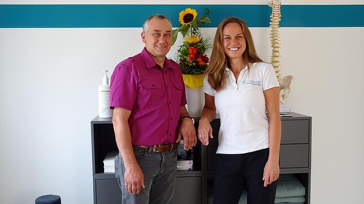 Bürgermeister Horst Reuther gratuliert Linda Schneider zu ihrer neu eröffneten Privatpraxis für Physiotherapie in der Seebachstraße 9 in Albertshofen.