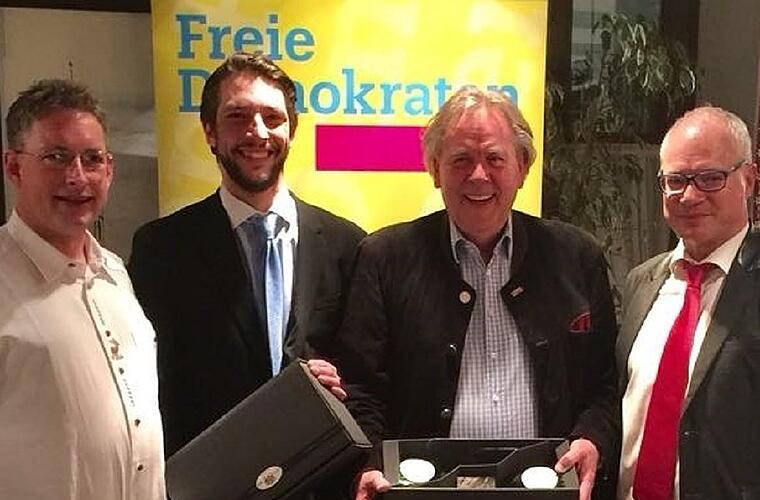 Zur Traditionsveranstaltung „Politik und Wein“ des FDP-Kreisverbandes Kitzingen begrüßte Organisator und FDP-Landtagskandidat Hans Müller in Iphofen den Generalsekretär der FDP Bayern, Norbert Hoffmann, und den ehemaligen Landesvorsitzenden, Albert Duin, als Hauptredner.