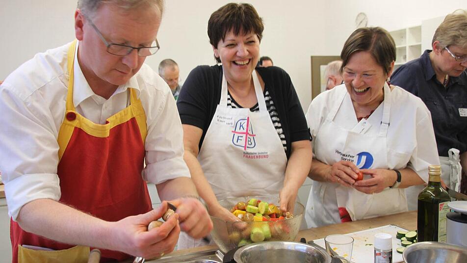 Zeit also, was richtig Leckeres für Balkon und Terrasse, für den Picknick-Korb oder zum Grillen zuzubereiten", fand Löffler, die wie eh und je vor Tatendrang nur so sprühte. In Kooperation mit dem Medienbereich der Diözese hatte der VerbraucherService Bayern im Katholischen deutschen Frauenbund e.V. erneut seine Lehrküche in der Würzburger Bahnhofstraße geöffnet. Hier lässt es prima schnippeln und schnabulieren, Gemüse putzen, brutzeln und braten.