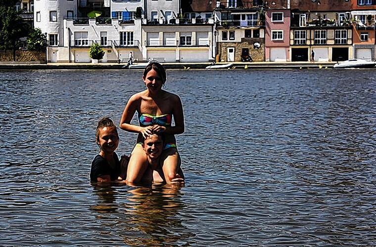 Noch ein Stückchen weiter ins Nasse trauen sich Greta Hirsch, Sabrina Trinklein und Viktor Mishko. Die drei Zehntklässler baden einige Meter vom Spielplatz entfernt im Main – nicht ganz freiwillig. „Ich wollte eigentlich nur bis zu den Knien rein“, sagt die 16-jährige Greta Hirsch. Der rutschige Untergrund war allerdings anderer Meinung und so tauchten alle drei ihre Köpfe am Mittwoch noch einmal unter Wasser, bevor sie am Donnerstag bei der Abschlussprüfung rauchen müssen.