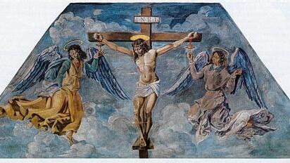 Die älteren Iphöfer, die die Kapelle des ehemaligen Krankenhauses (heute Altenbetreuungszentrum) kennen, haben es noch vor Augen: das großformatige Wandgemälde, das über dem Altar hing und den Gekreuzigten sowie zwei Engel zeigte. Das trapezförmige Gemälde, das auf mehreren Heraklit-Platten entstand, gibt es immer noch. Allerdings führt es ein Schattendasein in seinen Einzelteilen im städtischen Bauhof. Der Iphöfer Bauausschuss entschloss sich dazu, das Bild wieder herstellen zu lassen. Allerdings muss ein geeigneter Ort zum Aufstellen noch gefunden werden.