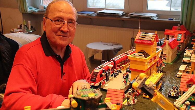 All das passiert auf dem Dachboden von Robert Brandl. Dort hat sich der Rentner aus Kitzingen einen lang gehegten Traum erfüllt: In jahrelanger Arbeit hat er eine Stadt gebaut. Eine Stadt aus Lego-Steinen. Die meisten davon hat er sich extra für sein Bauprojekt gekauft, eine Kiste mit Steinen war aber auch von seinen Kindern übrig.