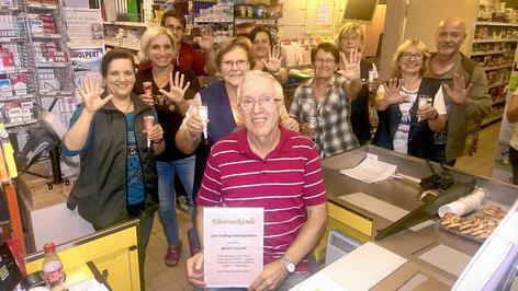 Richard Waigandt aus Nenzenheim steht seit 50 Jahren hinter Kasse und Theke seines Lebensmittel-Ladens in der Krassolzheimer Straße.