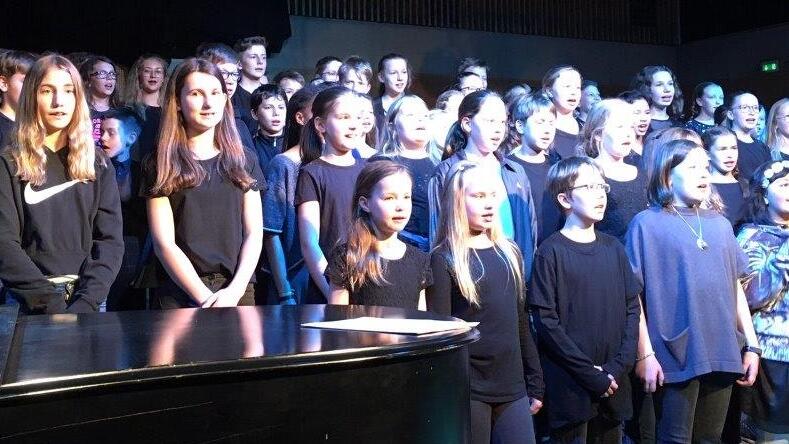 Auch der Namensgeber der Schule wurde mit dem Chorsatz “Der Einsiedler“ angemessen gewürdigt. „You’ll be in my Heart“ und „We go together“, gesungen von der Musical-Gruppe (Leitung: Raphael Schollenberger) rundeten die Beiträge ab. Melancholisch ging es weiter mit dem Unterstufenchor (Leitung: Johannes Unsinn) und einem Lied aus dem Film „Die Kinder des Monsieur Mathieu“. Zu diesem Chor gesellten sich die fünften und sechsten Klassen und formten einen riesigen Klangkörper. „Creep“ von Radiohead und „Friends“ von Marshmello, von so vielen Kinderstimmen eindrucksvoll präsentiert, ließ niemanden im Saal kalt.