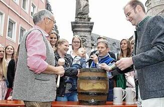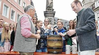 Am Samstag war der Marktplatz kurz vor elf Uhr gut gefüllt. Viele Gäste von Außerhalb und Einheimische warteten auf den Einsatz von Bürgermeister Klaus Heisel, der zusammen mit Peter-Michael Himmel von der Marktstefter Brauerei Kesselring das erste Fass Bier des Tages anstach.