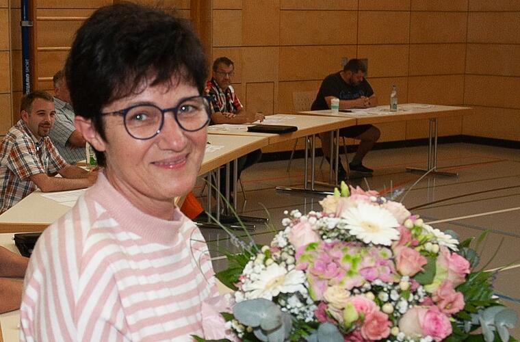 Eine "ganz besondere Ehrung" kündigte Bürgermeister Karl-Dieter Fuchs gleich zu Beginn der Sitzung an, wovon auch ein Blumenstrauß auf seinem Tisch kündete. Und eigentlich hätte er die Ehrung gerne im regulären Sitzungssaal und nicht in der etwas kahlen Turnhalle durchgeführt, sagte Fuchs, als er auf Sabine Fuchs zuging und ihr für 25 Jahre Tätigkeit als Gemeinderätin den Blumenstrauß überreichte. "Die Überraschung ist Dir gelungen", konterte Sabine Fuchs und versprach, wenn dies wieder möglich ist, die Ratskollegen zum Imbiss einzuladen.