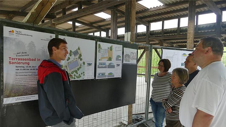 Die maßgebliche Förderung der Investition verpflichtete die Marktgemeinde am Samstag zur Teilnahme am Tag der Städtebauförderung. Gemeinderat Tobias Schramm erklärte den Besuchern die umfangreichen noch anstehenden Arbeiten. Dass das Freibad in dieser Badesaison nicht genutzt werden kann, liegt auf der Hand.