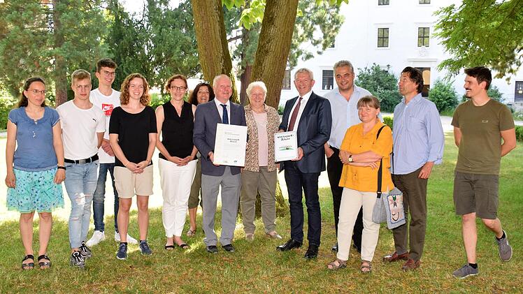 Der Vorsitzende des Naturparks Steigerwald, Landrat Johann Kalb (Bamberg), überreichte dem Schulleiter Arno Kaesberg im Großen Ahnensaal der Schule die entsprechende Urkunde. Sein Ziel sei es, in allen Landkreisen im Naturpark solche Schulen einzurichten.
