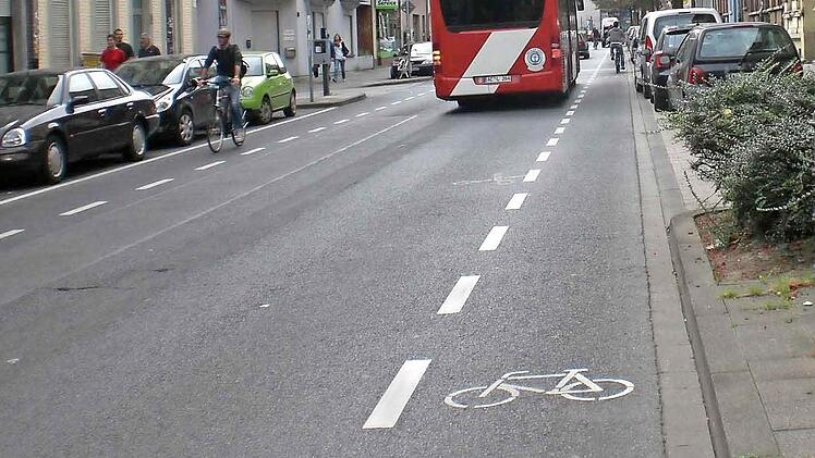 Mehr als nur Make-up für Straßen und Plätze: Kitzingen soll für alle attraktiver und sicherer werden. Zum Beispiel durch Schutzstreifen für Radfahrer, wie hier in Aachen.