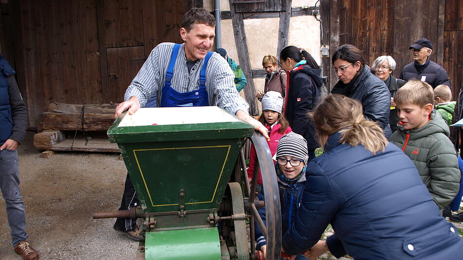 Nicht nur zuschauen - sondern wirklich hinlangen: So lautete am Sonntag beim Herbst- und Kelterfest im Kirchenburgmuseum Mönchsondheim die Devise.