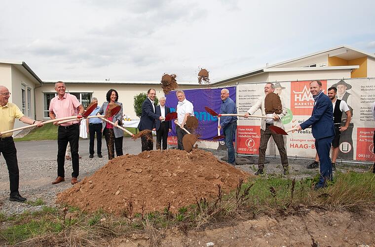 "Es ist ein Freudentag heute", sagte Diakonin Kerstin Baderschneider am Donnerstagnachmittag direkt neben dem Seniorenhaus Mühlenpark beim Spatenstich für die neue Großküche und eine Tagespflege. Für die Küche sei das, so die Dekanin, der Startschuss und die Baugenehmigung für die Tagespflege sollte bald erfolgen.