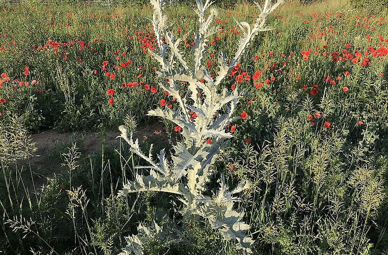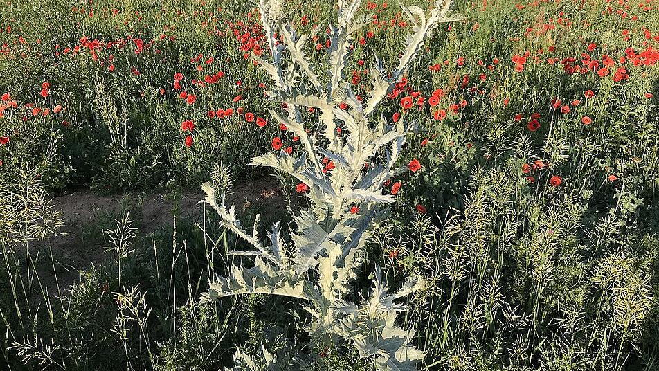 „Wir sind eine Woche voraus“ sagte Karl mit Blick auf die Entwicklung der Vegetation. Das zeigen nicht nur die Rosen, die bereits in voller Blüte stehen. Auf den Äckern haben sich Zuckerrüben und Mais gut entwickelt, bräuchten aber jetzt dringend Regen. Auf den warten die späten Getreidesorten wie Braugerste, Dinkel oder der Weizen, der zum Backen verwendet wird. „Die Situation ist angespannt“, sagt Karl mit Blick auf die Felder, auch weil der Schädlingsdruck zunimmt und Wärme liebende Krankheiten wie der Rost sich bei den Temperaturen besonders verbreiten.