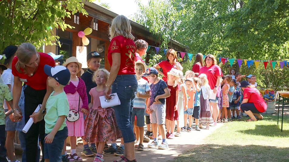 Am Sommerfest gab es für die Kinder im Garten an den verschiedenen Spielstationen viel Gelegenheit für Spiel und Spaß. Eine besondere Attraktion war die Aufführung eines Zauberers. Eine Schätzfrage, wie schwer denn aktuell die 123 Kinder der Einrichtung sind, beschäftigte die Eltern an diesem Tag. Die Lösung war 2378 kg. So war es ein gelungenes Geburtstags-Sommerfest 2022, dass vom Erziehrinnen-Team, vom Elternbeirat und von vielen fleißigen Eltern, engagiert vorbereitet und durchgeführt wurde.