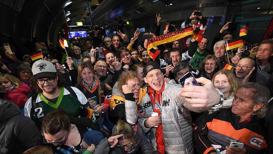 Deutschland ist jetzt Eishockey-Land. Zumindest noch ein paar Tage. Am roten Teppich, der im Fraport-Center für die heimkehrenden Olympia-Teilnehmer ausgelegt war, standen ungewöhnlich viele Menschen in klobigen Eishockey-Trikots Spalier. Aus deutscher Sicht waren die Puckjäger mit ihrer unerwarteten Silbermedaille die ungekrönten Könige der Winterspiele von Pyeongchang.