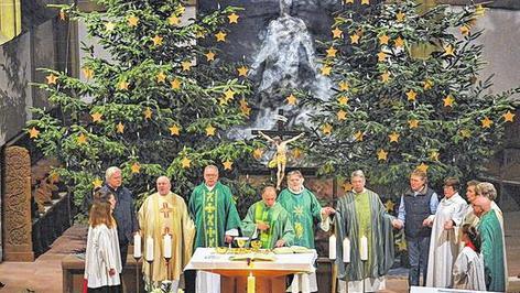 Eindrucksvoll war der große Einzug beim Festgottesdienst, der anlässlich des fünfjahrigen Bestehens der Pfarreiengemeinschaft St. Hedwig im Kitzinger Land abgehalten wurde. Vertreter der sechs Mitgliedsgemeinden in und um Kitzingen zogen mit der Hedwigs-Kerze und einem Holzteil in St. Johannes ein.