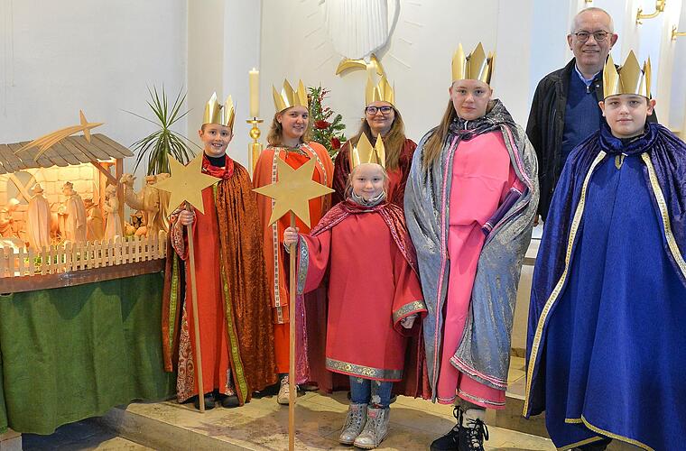 In der Pfarrei St. Vinzenz Kitzingen-Siedlung ziehen die Sternsinger jedes Jahr von Haus zu Haus. Dieses Jahr erfreute eine kleine Gruppe von sechs Sternsingern in ihren farbenfrohen Gewändern die Gottesdienstbesucher. Zum Ende sprachen sie ihren Segensspruch. Pfarrer Gerhard Spöckl bat alle Besucher den weihnachtlichen Segen in Form von Aufklebern und Kreide für ihr Haus und ihre Wohnung mit nach Hause zu nehmen. Die heiligen drei Könige nahmen nach dem Gottesdienst gerne Spenden für die diesjährige Sternsinger-Aktion unter dem Motto "Gesund werden – gesund bleiben". an. Hocherfreut wurden von den jungen Sternsingern auch Schokolade und Süßigkeiten angenommen und unter sich verteilt. Für nächstes Jahr hoffen alle, wieder von Haus zu Haus ziehen zu dürfen, die Häuser direkt segnen und die Menschen persönlich treffen zu können.