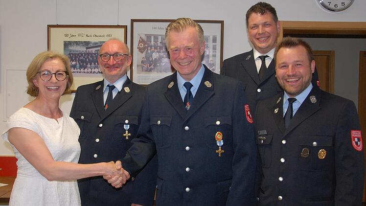 Die Ehrung der Kameraden Johannes Hamberger und Reiner Scheck für 40 Jahre aktiver Dienstzeit war der Höhepunkt der Jahreshauptversammlung der Freiwilligen Feuerwehr (FFW) Obernbreit. Bürgermeisterin und stellvertretende Landrätin Susanne Knof würdigte die Kameraden und verlieh ihnen das staatliche Feuerwehrehrenzeichen in Gold und einen Gutschein für eine Woche im Feuerwehrerholungsheim Bayrisch Gmain. Seitens der Gemeinde gab es noch zweite Gutscheine für die Partnerinnen der Geehrten und Vorsitzender Werner Freudinger hatte Präsente parat. Dazu gratulierte auch Kreisbrandmeister Mario Manfrini.