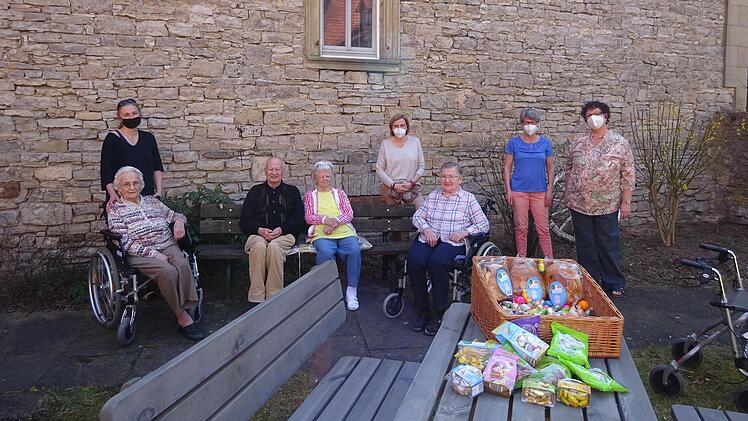 Mitglieder der Dettelbacher SPD haben ein großes Osternest für die Bewohner und Mitarbeiter des Hornsche Spitals in Dettelbach übergeben. Die Übergabe fand coronakonform in der Gartenanlage statt. Die Verwaltungsangestellte Anja Haarmann hat den Korb für alle dankend entgegengenommen. Anschließend wurde er in den allgemeinen Aufenthaltsraum gebracht, wo sich jeder bedienen darf.