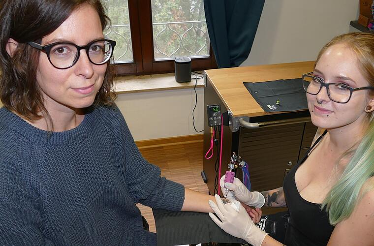 Vor einem Jahr eröffneten Laura Lindörfer und Lloyd Grobbelaar ihr Studio Limpid Tattoo Art für Tattoos und Piercings im Richthofen Circle. Nun bot das vierköpfige Team wie schon im Vorjahr eine Tätowieraktion für einen guten Zweck an und konnte Zuspruch und Nachfrage kaum bewältigen.