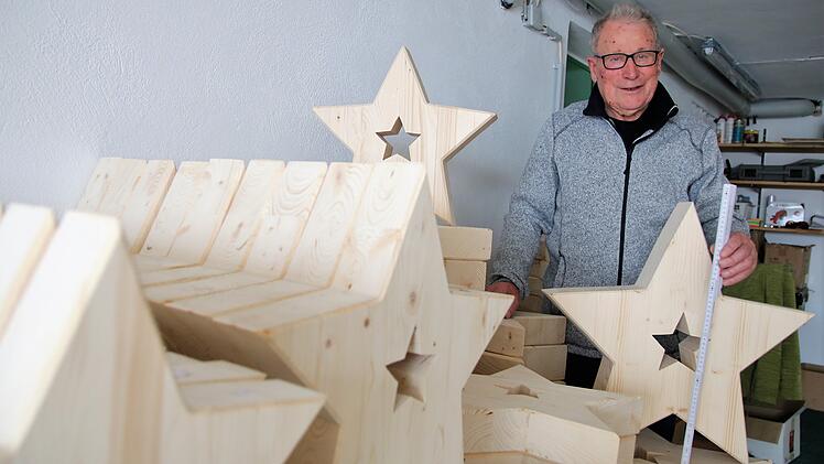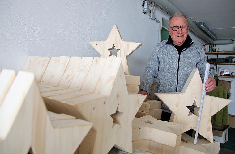 Täglich drei bis vier Stunden hat Rentner Adolf Weissenseel aus Stammheim in diesem Jahr wieder Sterne aus Holz für einen guten Zweck gezimmert.