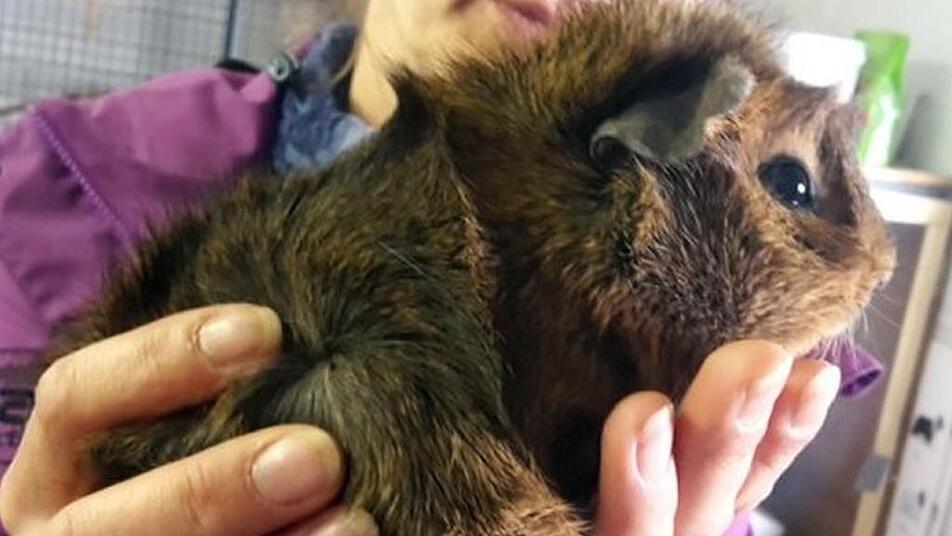 Der circa fünf Monate alte kastrierte Willi, ein waschechtes Rosetten-Meerschweinchen, wirkt noch etwas ängstlich in der ungewohnten Umgebung im Kitzinger Tierheim und hofft darauf, schnell ein neues Zuhause zu finden.