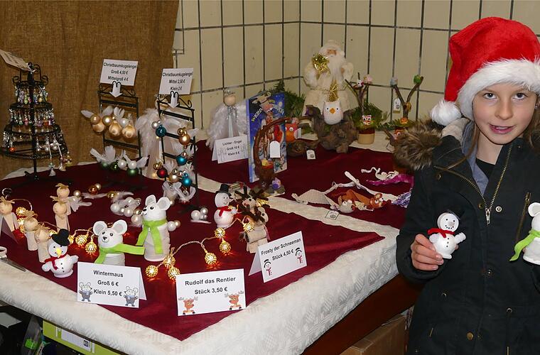Der traditionelle Weihnachtsmarkt in der Kirchenburg Seinsheim und rund um die erhaben stehende Pfarrkirche St. Peter und Paul erwies sich wieder als Publikumsmagnet. Holzarbeiten beherrschten das reichhaltige Angebot in den Ständen und den Gaden. Holz als Gebrauchsgegenstand, vor allem aber als weihnachtlicher Schmuck mit Sternen und Figuren gab es in schier unüberschaubarer Auswahl. In der guten Stube der Ministranten lagen christlich und religiös orientierte Miniaturen zur Verlosung bereit. Ministranten, deren Angehörige, aber auch ehemalige Ministranten lassen es sich alljährlich nicht nehmen, unter der Leitung von Elfi Gebhardt Geld zu sammeln, das im Januar - aufgestockt durch Spenden der weiteren Standbetreiber - der Kinderstation Tanzbär in der Missio-Klinik in Würzburg überreicht wird. Dort werden schwerst mehrfachbehinderte Kinder und Jugendliche behandelt und betreut. Gebhardt wünscht sich, dass der in bisher 22 Jahren gesammelte Betrag die Grenze 50.000 Euro übersteigt. An der Spendenaktion beteiligt sich auch die neunjährige Saskia Rünagel (im Bild), die ihre Bastelarbeiten unter Aufsicht der Eltern verkaufte und die eine eigene Spende machen will. Für die Verpflegung war mit Bratwürsten, Glühwein und vielen Süßigkeiten zur Weihnachtszeit gesorgt. Mit einer Andacht in der Pfarrkirche fand der Weihnachtsmarkt seinen Abschluss.