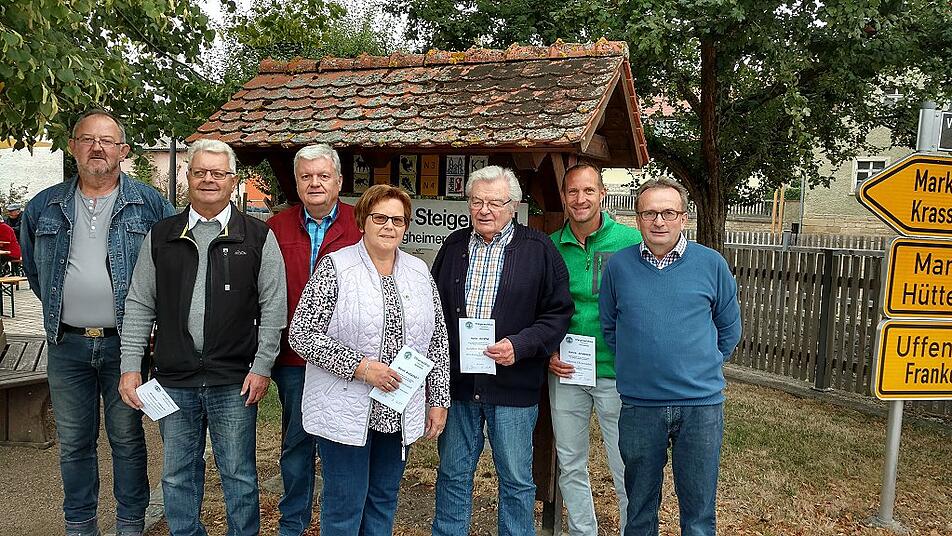 Der Dreh- und Angelpunkt des Steigerwaldklubs Nenzenheim ist zweifelsohne der Andreas-Därr-Turm, der im Wald zwischen Nenzenheim und Krassolzheim an Sonn- und Feiertagen für Wanderer offensteht. Auf Platz zwei steht aber schon seit vielen Jahren das Marktplatzfest, bei dem die Dorfbevölkerung immer am ersten Sonntag im September in der Ortsmitte zusammenkommt. Das Fest nutzte Manfred Krämer, Vorsitzender des Steigerwaldklubs Nenzenheim, um langjährige Mitglieder zu ehren.