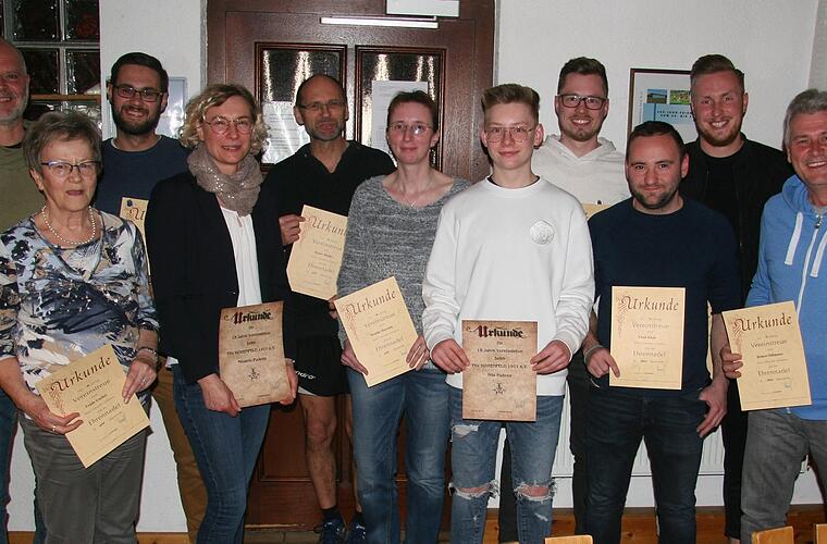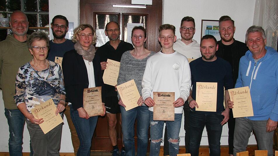 Geehrt wurden für 40 Jahre Albin Biedenbacher, Trude Gaebel, Monika Heerlein, Rainer Radler; 25 Jahre: Katrin Dennerlein, Eugen Dillmann, Robert Dillmann, Simon Kiemer, Vitali Klein, Dominik Krenzer, Cornelia Schmid-Kleiner, Thomas Schmitt; 15 Jahre: Thomas Podschun, Lilly Pudenz, Nils Pudenz, Melanie Pudenz und Laura Wegner.