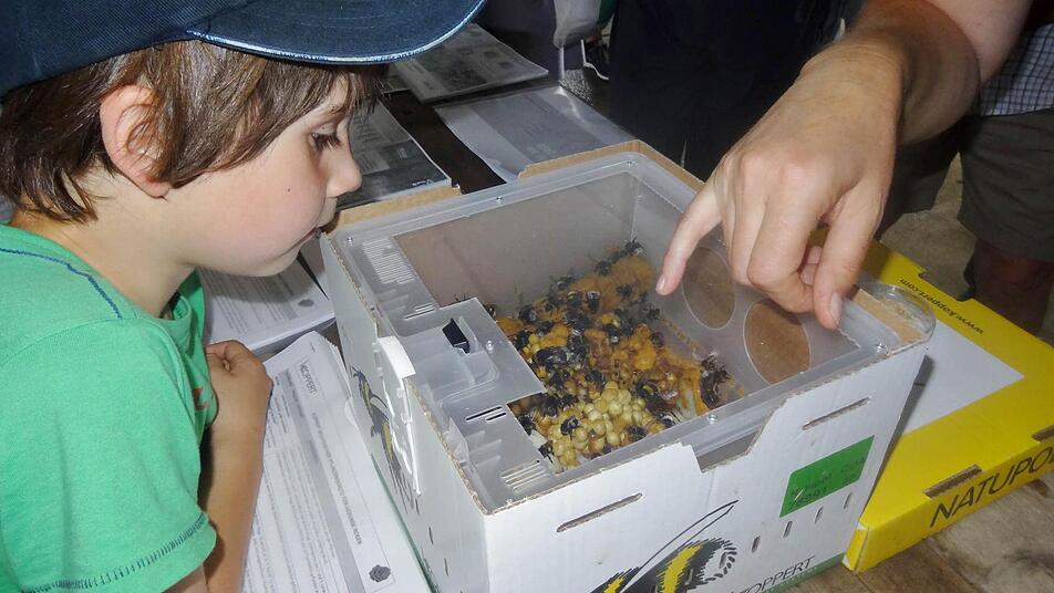 Wie gebannt schaut der kleine Leonard Tygges in den Karton mit Hummeln. Drei Hummelvölker tummeln sich darinnen. Jedes Volk besteht aus einer reproduktiven Königin, mindestens 120 Arbeiterinnen und Brut in verschiedenen Entwicklungsstadien. Sie werden zur Bestäubung der Tomaten im Treibhaus eingesetzt. Während des Bestäubens versetzen sie die Blüten in Schwingungen und sorgen somit für eine intensive Bestäubung der Tomaten.