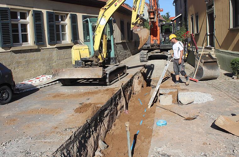 Bürgermeister Gerhard Ackermann weiß über den Stand Bescheid. „Die Hauptleitung im ersten Abschnitt ist fertig, als nächstes werden die Leitungen für die Hausanschlüsse dort erneuert.“