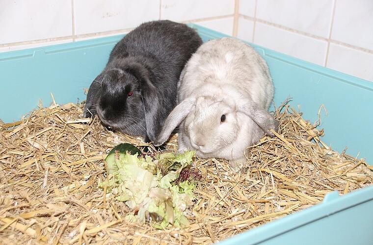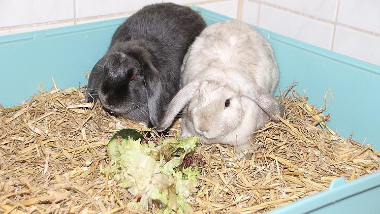 Susi und Strolch sitzen im Käfig im Kitzinger Tierheim und warten auf ein neues Zuhause. Strolch ist kastriert und wie Susi neun Monate alt. Zu haben sind die beiden Widder, die schon immer zusammen waren, übrigens nur im Doppelpack. Wer Interesse hat, anrufen unter Tel. (0 93 21) 50 63 oder nachschauen unter www.tierheim-kitzingen.de Foto: Siegfried Sebelka