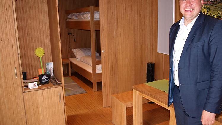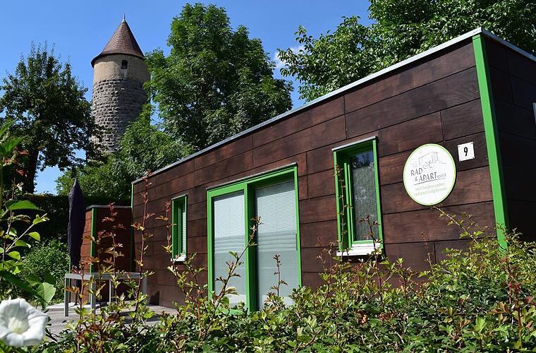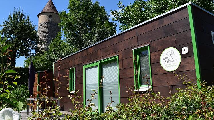 Immer wieder muss Joachim Göpfert die Fensterscheibe seines Rad-Apartments putzen – von außen. „Neugierige Leute scheinen immer wieder ihre Nase ran zu drücken, um einen Blick hinein zu werfen“, freut sich der Hotelier über das rege Interesse, das Einheimische an dem hölzernen Übernachtungs-Container für den Kurzurlauber oder Aktivurlauber haben. Seit Februar ist das Mini-Hotel geöffnet – übrigens das erste seiner Art im Landkreis Kitzingen.