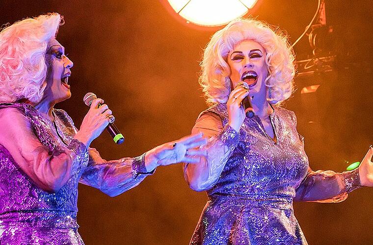 Apropos Moderatorin: Elke Winter war mit ihrer Mutter France Delon als Duo unterwegs, und die beiden kabbelten sich wie ein altes Ehepaar. Selbstironisch, mit eindeutig-zweideutigem Schweinskram und stets einem flotten Spruch auf den Lippen hätte die beiden allein den Abend schmeißen können. Kostümmäßig stets im Partnerlook gönnten sie sich selbst auch einige Gesangseinlagen, und auch die Veranstalterin Mechthild Lavette steuerte eine Reihe Lieder für das sehr bunte Programm des Abends bei.