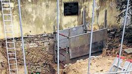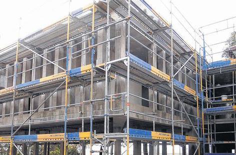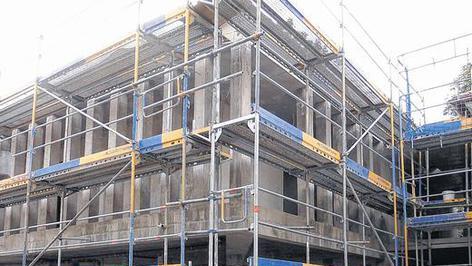Also einmal bis zur Kirche und zurück. Ein bisschen bei archäologischen Ausgrabungen zuschauen. Den Blick schweifen lassen: Da, wo vor wenigen Monaten noch eine Freifläche war, steht ein Beton-L auf Stelzen. Ein Kran, neben dem Mariä Schutz wie ein Spielzeug wirkt, ist ununterbrochen im Einsatz.
