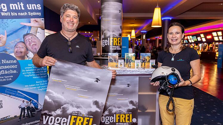 Insgesamt neun Jahre sind Doreen Kröber und Andreas Zmuda bereits mit ihrem Trike als fliegende Globetrotter in der Welt unterwegs. Im Cineworld-Kino im Dettelbacher Mainfrankenpark stellten sie ihren Film "Vogelfrei – Ein Leben als fliegende Nomaden" vor, wie das Kino in einem Presseschreiben mitteilt.
