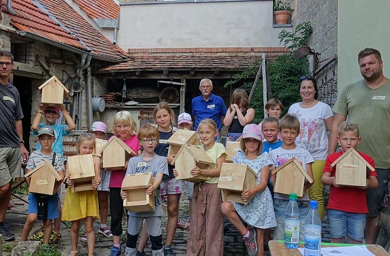 Bei schönstem Sommerwetter haben sich in Rödelsee 16 Mädchen und Jungs aus der Region zusammengefunden, um gemeinsam im Rahmen der Ferienpassaktion ein Vogelfutterhäuschen zu bauen, so die veranstaltende CSU in einer Pressemitteilung. Unter Anleitung des CSU-Vorsitzenden Hermann Eickhoff und des Bauhofleiters Andre Stadtel schraubten die Kinder im Hof des Elfleinshäusla die Einzelteile zusammen und werkelten am Vogelfutterbausatz. Jedes Kind baute sein eigenes Vogelhaus zusammen, denn der nächste Winter kommt bestimmt. Die Aktion wurde unterstützt von Bürgermeister Burkhard Klein und Rainer Östheimer vom Team Elfleinshäusla. Nach der Bauaktion durften sich alle mit Bratwurst im Brötchen und Getränken stärken.