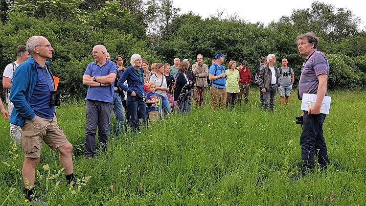 Anhand von ehemaligen Schul-Präparaten hatte Schwab zuvor Modelle von der Goldammer bis zum winzigen Zaunkönig vorgestellt. Die 35 Teilnehmer und Teilnehmerinnen erfuhren, dass Unterfranken ein typisches Nachtigall-Gebiet ist. Ihr bezaubernder Gesang war während der zweieinhalbstündigen Wanderung immer wieder zu hören.