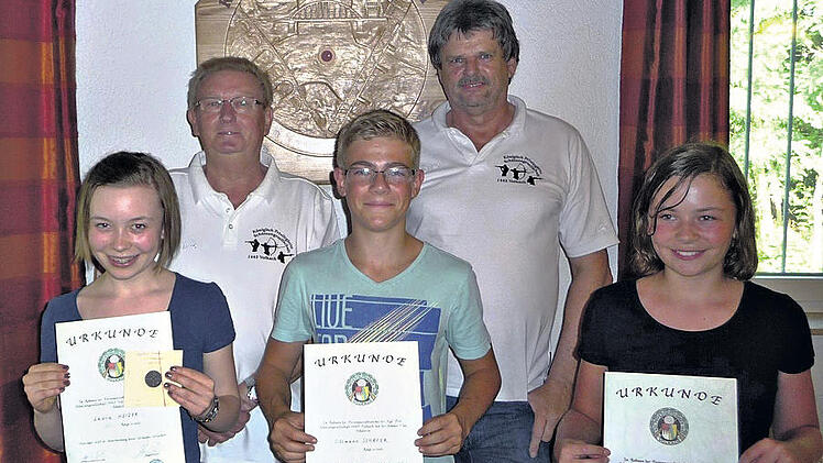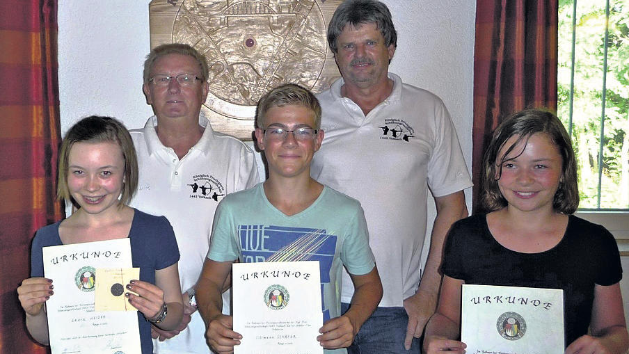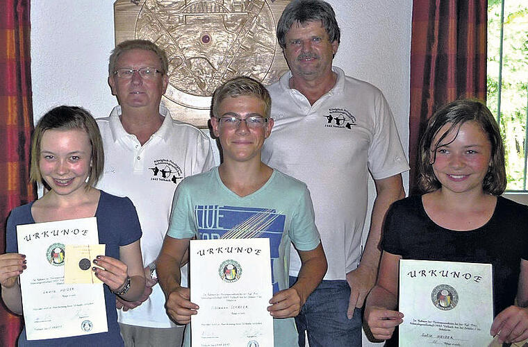 Dem Probeschießen folgte ein Wettkampf mit einer Serie mit dem Luftgewehr und dem Bogen. Die Auswertung ergab folgende Sieger, die der stellvertretende Vorsitzende Heinz Götz ehrte: 1. Platz mit 118 Ringen Tillmann Schäfer, 2. Sofie Heider mit 87 Ringen und 3. Laura Heider mit 86 Ringen. Nach der Anstrengung stärkten sich die Kinder mit Getränken und von Marianne Götz spendiertem Kuchen.
