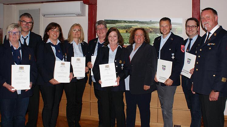 Zum Abschluss des Abends wurden sieben Frauen und Männer für 25 Jahre aktiven Einsatz geehrt. Die Ehrung übernahm Kreisbrandinspektor Michael Krieger. "Ich bin schon oft in Sommerach gewesen, und es freut mich jedes Mal, hier gute und kompetente Leute zu wissen, die sich seit Jahren mit viel Engagement und Verantwortungsbewusstsein ehrenamtlich einbringen. Wir brauchen jede Frau und jeden Mann, die uns tatkräftig unterstützen", hob er hervor. Geehrt für 25 Jahre wurden Sabine Glaser, Bianca Drescher, Elke Karg, Martina Östreicher, Gabriele Zobel, Carsten Heinlein und Tobias Wörle.