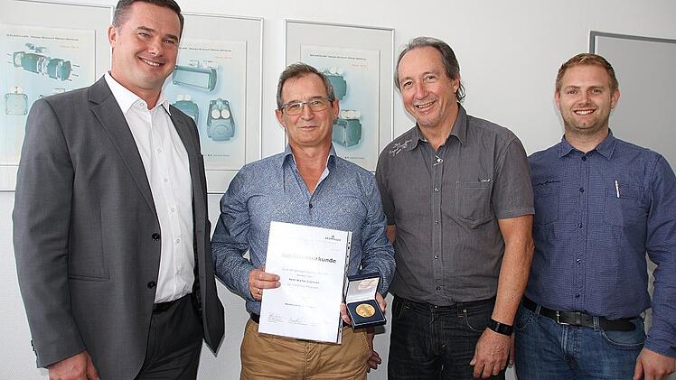 Zu seinem Jubiläum gratulierten ihm am Dienstag der technische Leiter am Standort Kitzingen, Gerhard Melzer, Betriebsratsvorsitzender Martin Konnerth und der Abteilungsleiter der Dreherei Johannes Dworschak. Die Firma Baumüller wurde 1930 mit Stammsitz in Nürnberg gegründet, 1960 eröffnete der Produktionsort in Kitzingen. An über 40 Standorten weltweit produzieren und vertreiben knapp 2000 Mitarbeiter elektrische Automatisierungs- und Antriebssysteme für den Maschinenbau.