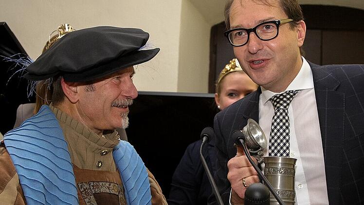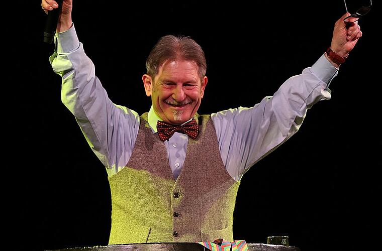Tausendsassa Walter Vierrether kandidiert für den Kitzinger Stadtrat. Ob er da so viel Spaß haben wird, wie in der Weinfassbütt, bei der „Weinseligen Narrensitzung?“ Archiv