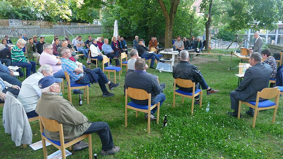 Etwa 50 Bürger und Stadträte verfolgten die Bürgerversammlung im Hellmitzheimer Gemeindegarten. Bei Bürgermeister Dieter Lenzer waren viele Bürgeranfragen eingegangen, die er nacheinander abarbeitete.