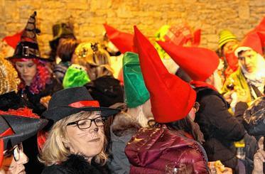 „Spieglein Spieglein an der Wand, ich bin die Schönste im ganzen Land“ rief Appolonia 17. ins Narrenvolk. Die selbst ernannte Weinprinzessin alias Wolfgang Düringer hatte sich mit Krönchen und hoheitlichen Klamotten unter die lustige Frauenmeute gemischt, die am Donnerstag die Volkacher Altstadt zur Partymeile machte.