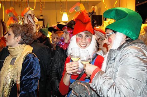 „Spieglein Spieglein an der Wand, ich bin die Schönste im ganzen Land“ rief Appolonia 17. ins Narrenvolk. Die selbst ernannte Weinprinzessin alias Wolfgang Düringer hatte sich mit Krönchen und hoheitlichen Klamotten unter die lustige Frauenmeute gemischt, die am Donnerstag die Volkacher Altstadt zur Partymeile machte.