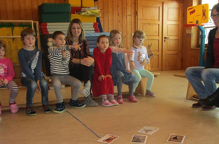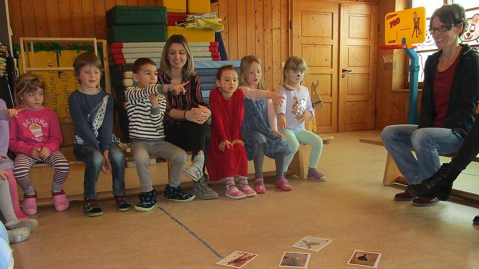 Eine Kollegin hatte den Kontakt zum Landesbund für Vogelschutz in Bayern hergestellt. Und so war dieser zu Gast in der Einrichtung. Anhand von Bildkarten zeigten Martina Sagmeister und Janina Kempf den Vorschulkindern verschiedene Vogelarten. Die Kinder durften erzählen, welche Vögel sie bereits kennen. Dabei staunten die Erwachsenen über das große Wissen der Kindergruppe. Besonders Eindruck hinterließen die Vogelpräparate zum Anfassen bei den Kindern. Nach dem gemeinsamen Anhören von Vogelstimmen gab es zum Abschluss eine besondere Aktion: mit Hilfe von mitgebrachten Astgabeln und Joghurtbechern, stellten die Kinder zusammen mit den Damen vom LBV aus Rosinen, Pflanzenfett und Sonnenblumenkernen Vogelfutter her.